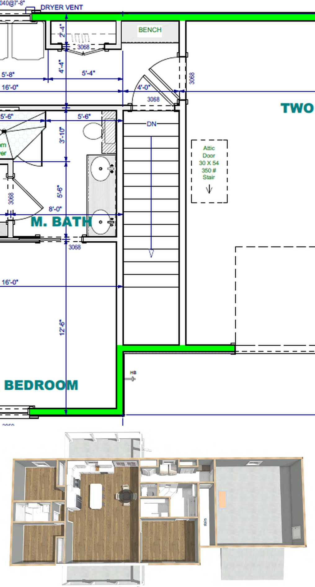 I have attached two images showing the stair location for this house plan. We added 4' onto the overall width of the house which now makes it 78' and the square footage changes to 1451.