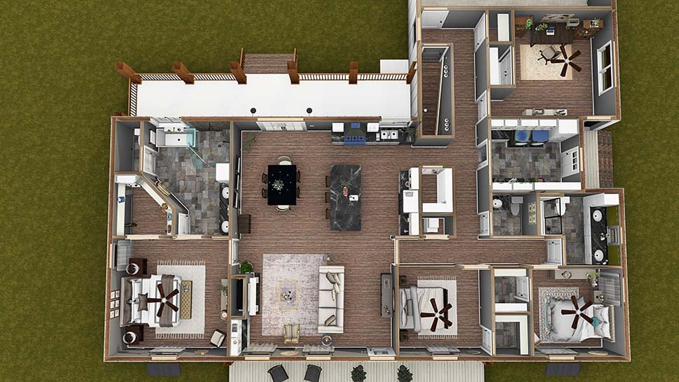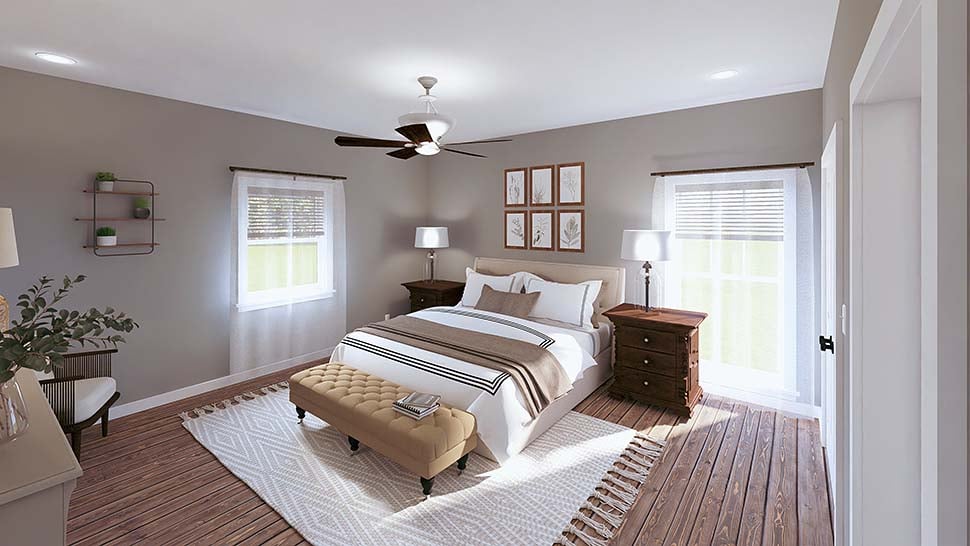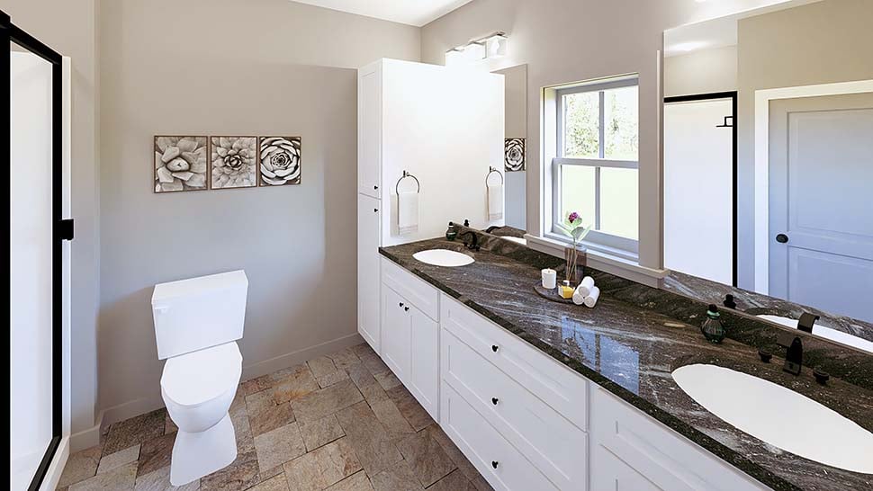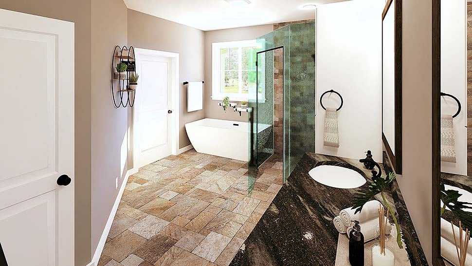 Presenting a 2,481 heated square foot plan that includes 3 bedrooms, 2.5 bathrooms, an owner’s choice room, and numerous other impressive design features! Entering the home from the 8-foot-deep covered front porch, you find the Great Room, which shares an open floor layout with the Kitchen and Dining Area. The Great Room features a ventless gas fireplace, upper and lower cabinetry providing extra storage, and a beautiful cathedral ceiling. The Kitchen includes a 9’ X 4’ island and a large walk-in pantry. Double doors from the Dining Area lead to the 8-foot-deep covered rear porch. The Master Bedroom boasts a spacious walk-in closet. The Master Bathroom features a double vanity, a custom shower with a bench, a separate freestanding bathtub, and a private toilet. The other bedrooms are located on the opposite side of the home, ensuring maximum privacy. Both Bedrooms 2 and 3 have walk-in closets. A ½ bath and a full bathroom are conveniently located in the hall, easily accessible from either bedroom or for guests. The large laundry room provides ample cabinets for storage and an optional drying rod area. The Laundry Room includes an exterior door that leads out to the side covered entry, which is also accessible from the Owner’s Choice Room. The Owner’s Choice Room could serve as an additional bedroom, gym, or home office. There is a coat closet in the hall near the doorway leading to the Garage.