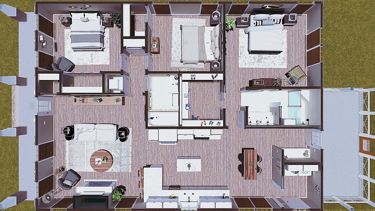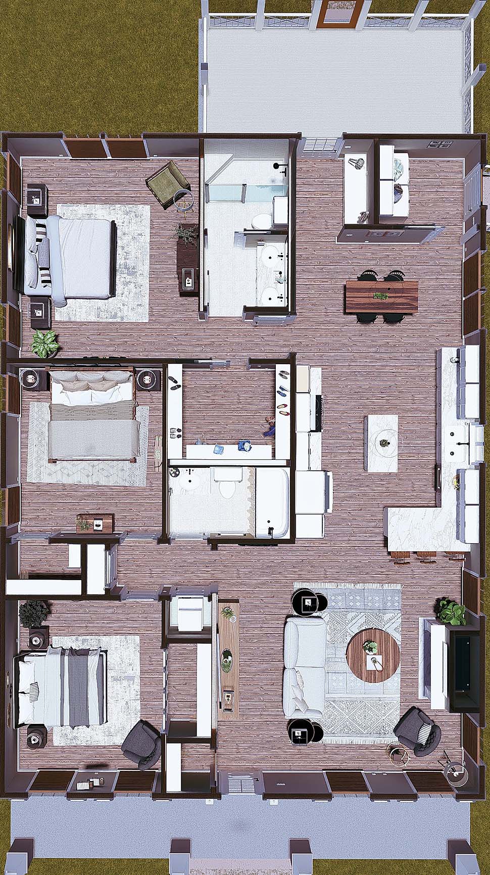 Traditional Style, 1587 Sq Ft, 3 Bed, 2 Bath, 2 Car | Plan 77462