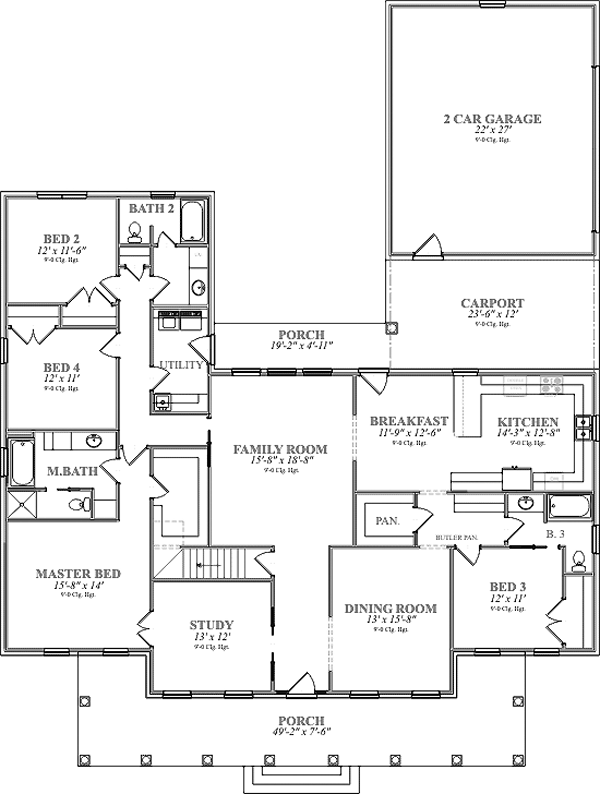 Colonial Style House Plan 78704 with 2590 Sq Ft, 4 Bed, 3 Bath, 2 Car Garage