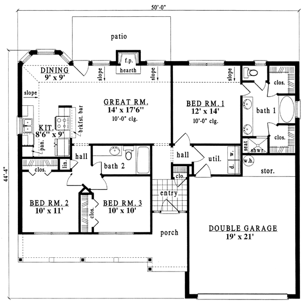 Plan 79170 | One-Story, Traditional House with 3 Bed, 2 Bath, 2 Car