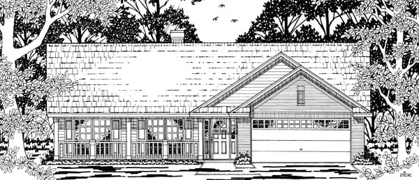 Traditional Style, 1296 Sq Ft, 3 Bed, 2 Bath, 2 Car | Plan 79170