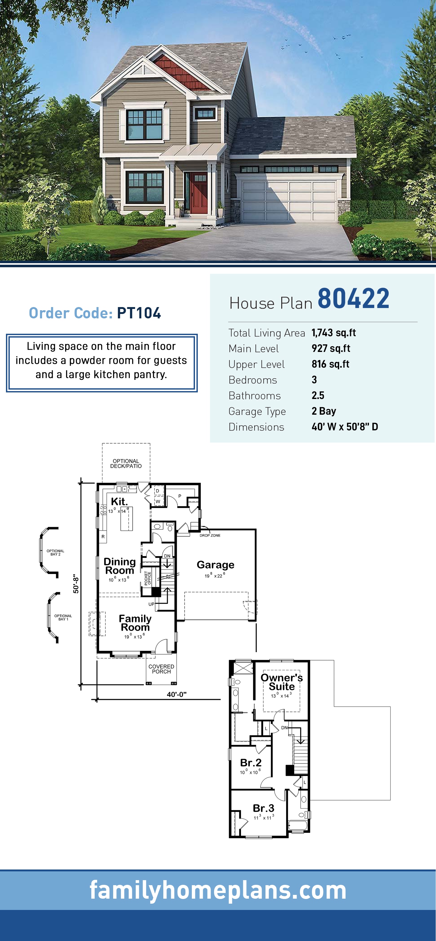 Plan 80422 | Country, Craftsman, Traditional House with 3 Bed, 3 Bath, 2 Car