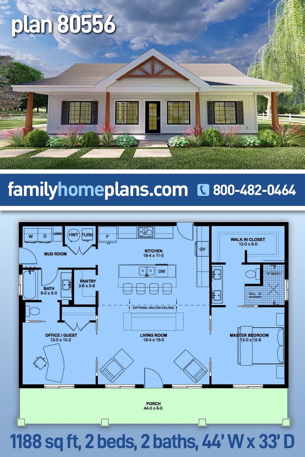 Plan 80556 | Country, Ranch House with 2 Bed, 2 Bath
