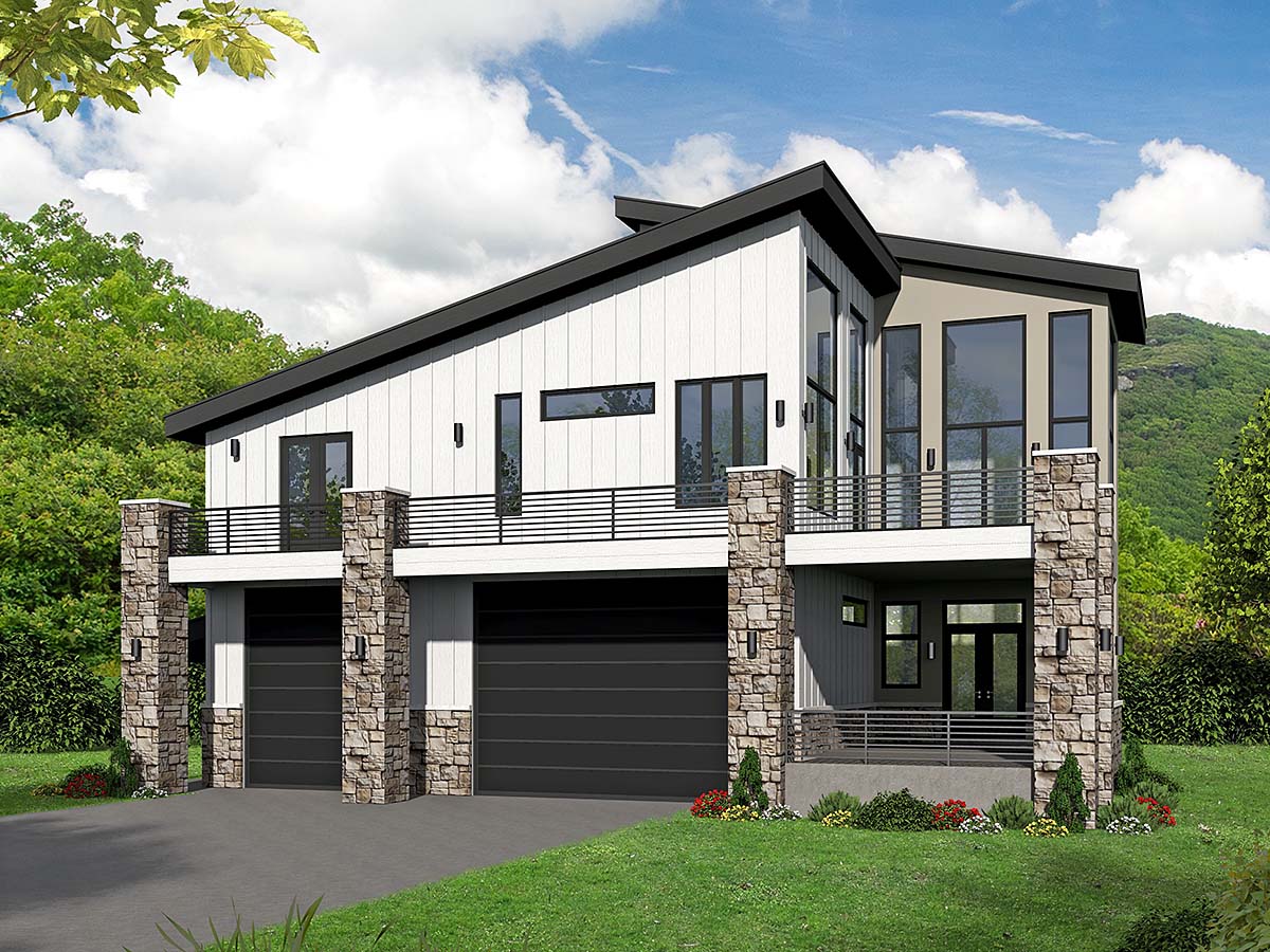 Coastal, Contemporary, Modern Style House Plan 80940 with 1920 Sq Ft, 2 Bed, 3 Bath, 3 Car Garage