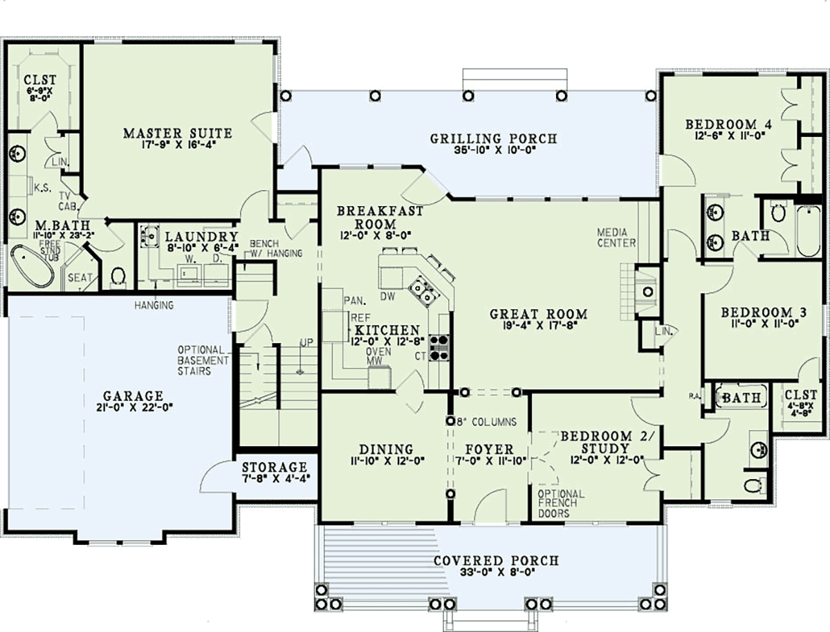 Traditional Style, 2373 Sq Ft, 4 Bed, 3 Bath, 2 Car | Plan 82389