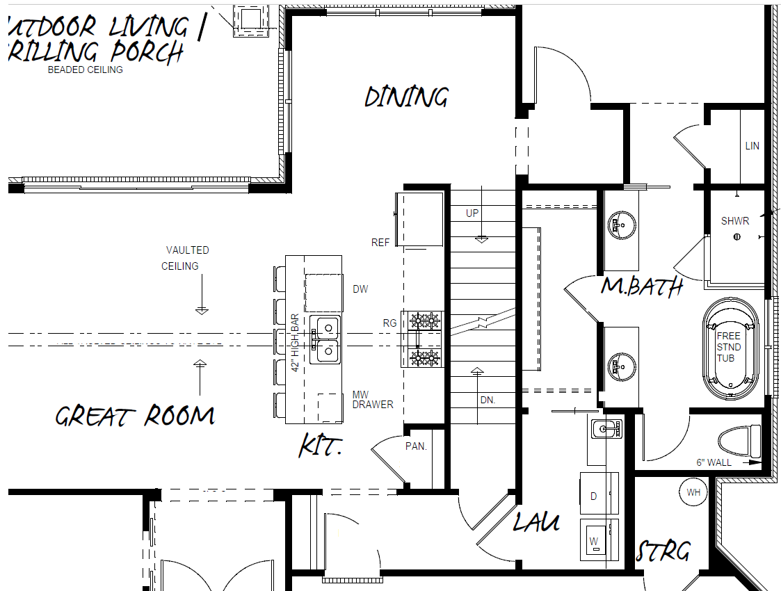 A: The basement is an optional add on foundation, so we do not have drawings showing it. However it would be unfinished space that mirrors the main level living space unless you want a modification to show the basement finished.