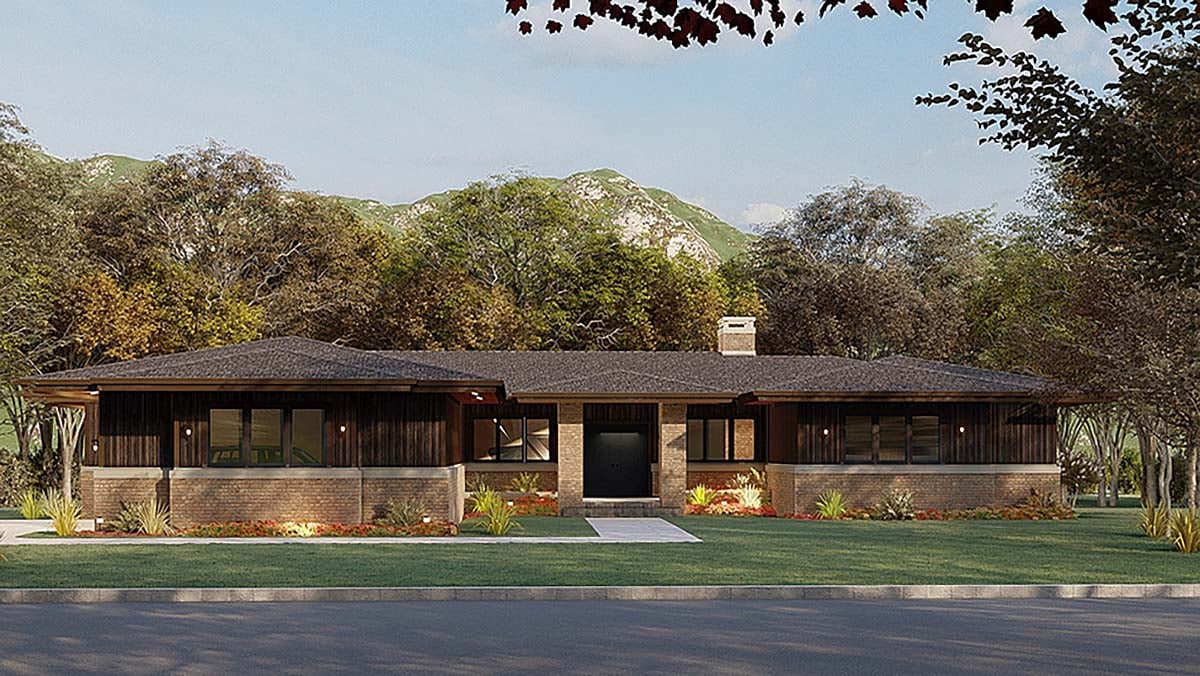 Contemporary, Prairie Style House Plan 82567 with 2681 Sq Ft, 4 Bed, 4 Bath, 2 Car Garage