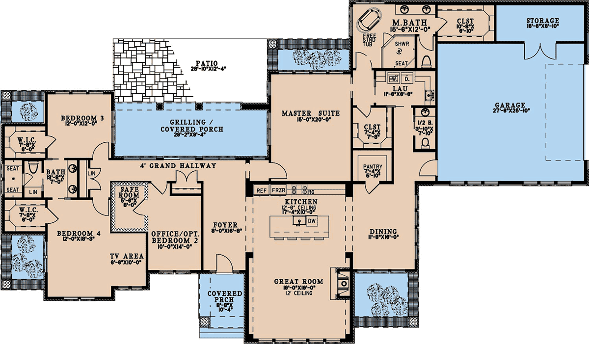 Ranch Style, 2954 Sq Ft, 4 Bed, 3 Bath, 2 Car | Plan 82785