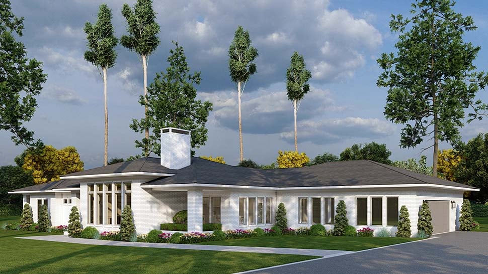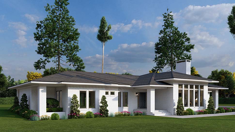 Plan 82785 | Mediterranean, Modern, Prairie, Ranch House with 4 Bed, 3 Bath, 2 Car