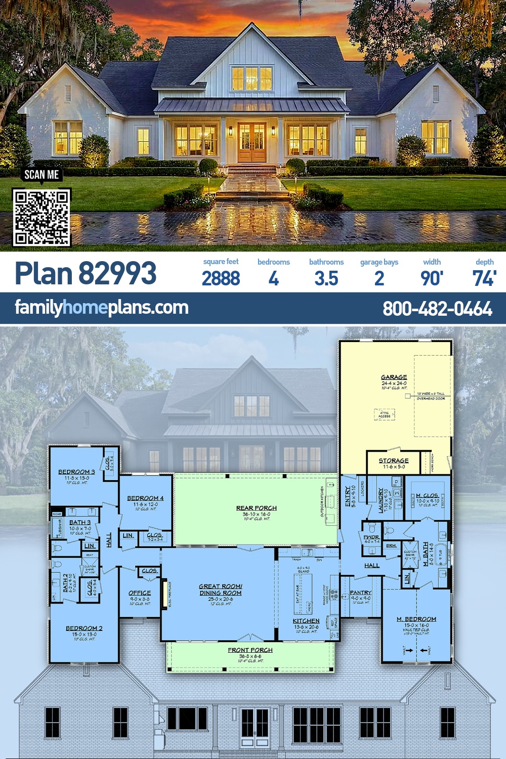 Spacious farmhouse-style home featuring an open-concept great room, dining area, and kitchen with large island and walk-in pantry. Private primary suite offers vaulted ceiling, spa-style bath, and generous closet space. Three additional bedrooms, two full baths, and a dedicated office provide flexible living options. Expansive rear porch extends the living space outdoors, ideal for entertaining. Thoughtfully designed layout with ample storage, functional flow, and timeless curb appeal.