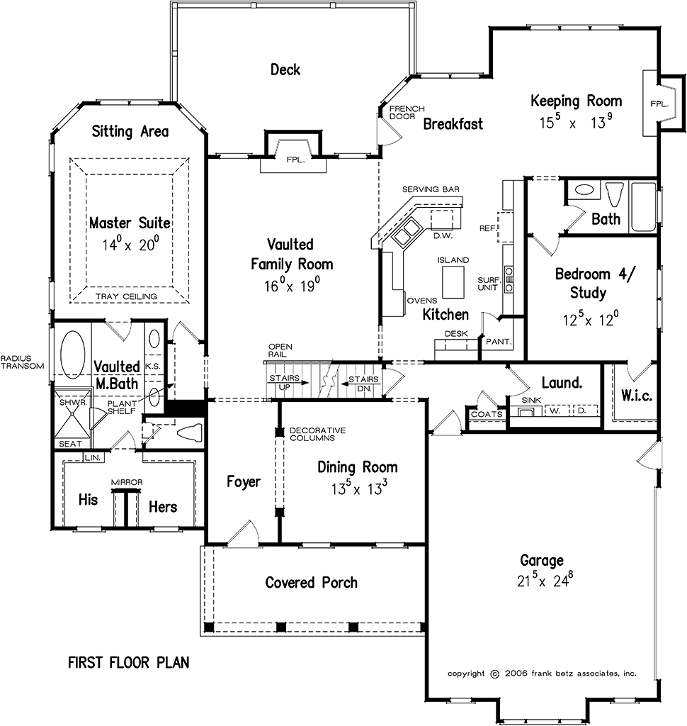 Devon Park House Plan - The Devon Park is a modern farmhouse design that is highly desirable in today's market. A brick foundation, clapboard siding and a wide front porch are the defining characteristics. Traditional dormers of the gable variety along with shed roof dormers are common details of the farmhouse style. The main level centers amid the large kitchen and vaulted family room. Designs with a central living area have been popular for many years and continue to be ever desirable. The breakfast and keeping rooms provide a family a casual easy living lifestyle. The master suite is large and fully appointed with its detailed tray ceiling and spa like bath and his-and-her closets. The study or downstairs bedroom is the perfect guest suite or home office. Two additional bedrooms and an optional bonus room are on the upper level and provide efficient square footage. The loft area with built-in cabinetry is located for quiet studying or fun computing with friends.