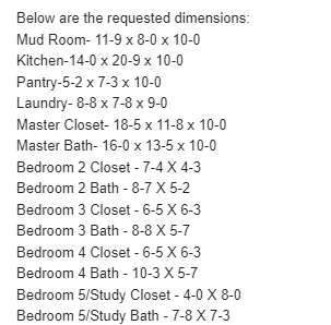 Q:Hello, is there any way to see what the room sizes of the pantry & mudroom are on this plan? We’re wanting to make a purchase of this plan with a few modifications but need to make sure the size will work for us first.