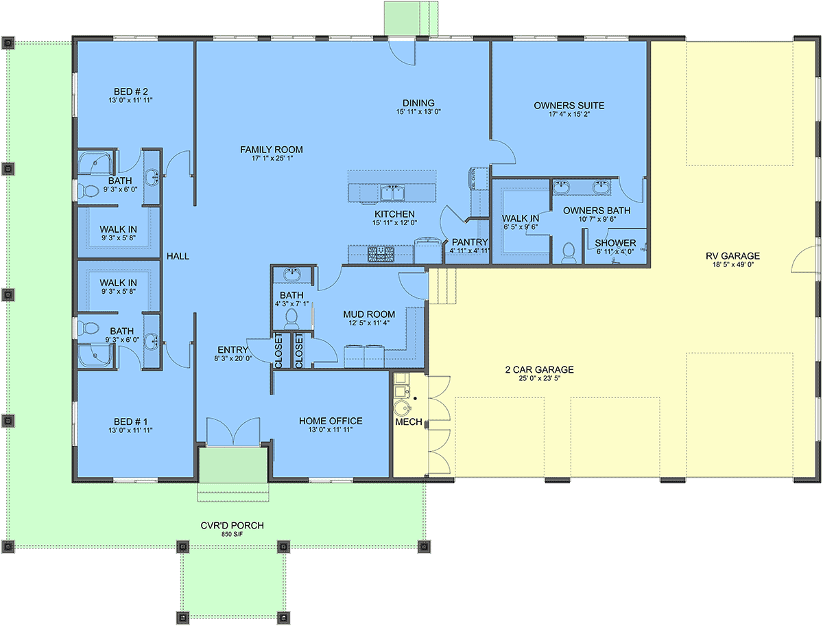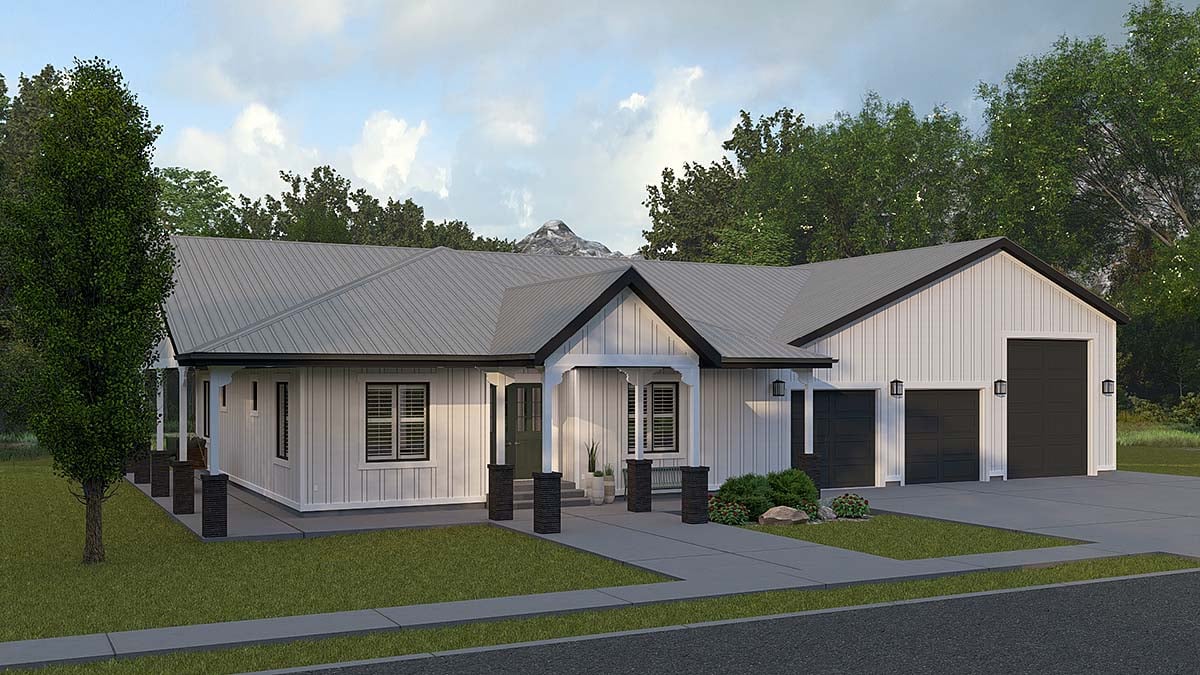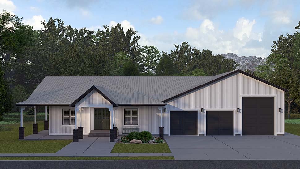 Barndominium, Country, Traditional Style House Plan 83682 with 2569 Sq Ft, 3 Bed, 4 Bath, 3 Car Garage
