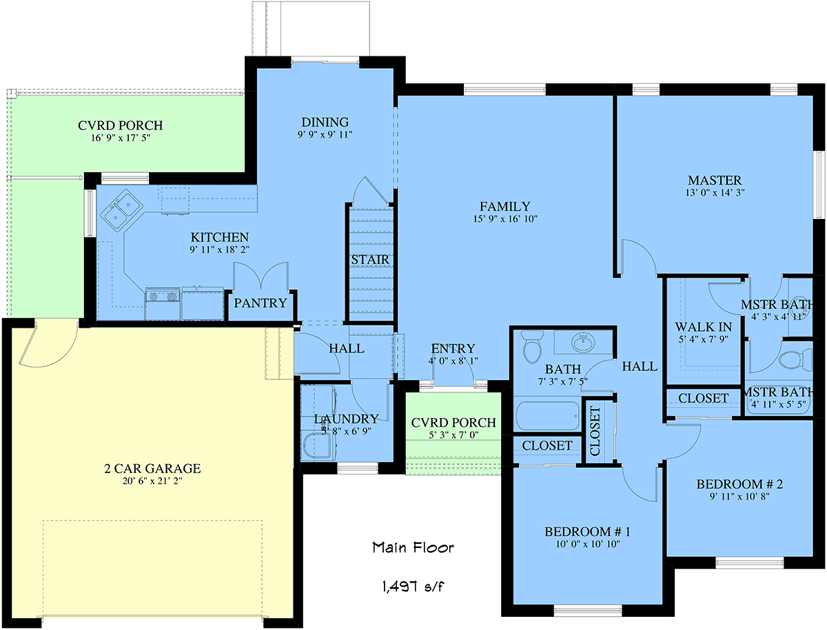 Traditional Style, 1497 Sq Ft, 3 Bed, 2 Bath, 2 Car