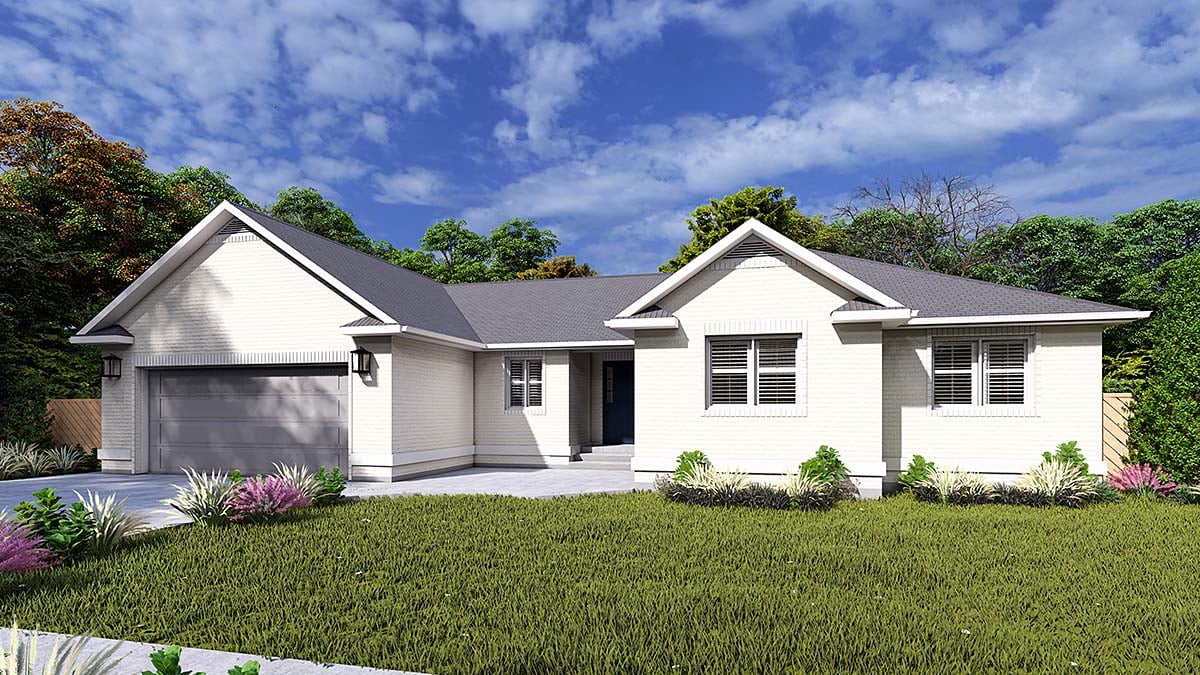 Ranch, Traditional Style House Plan 83686 with 1497 Sq Ft, 3 Bed, 2 Bath, 2 Car Garage