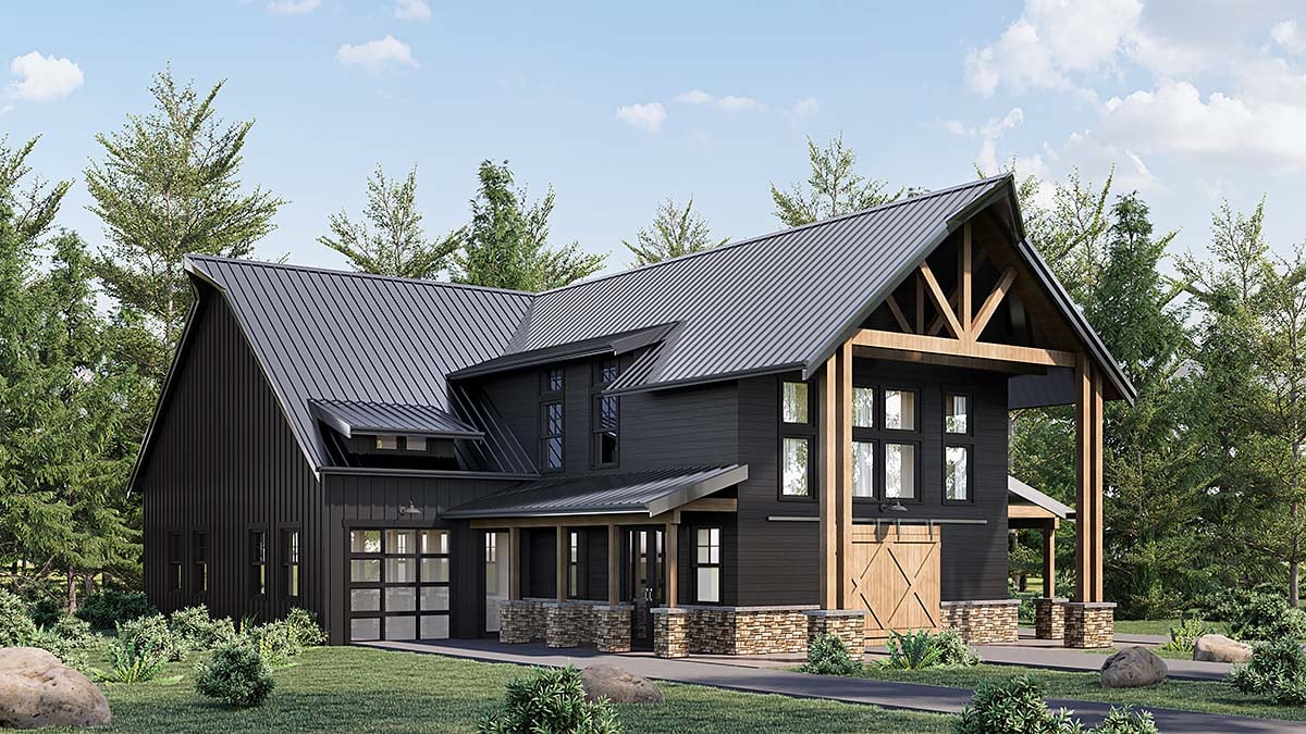 Barndominium, Country, Craftsman, Farmhouse Style House Plan 83804 with 1242 Sq Ft, 2 Bed, 3 Bath, 4 Car Garage