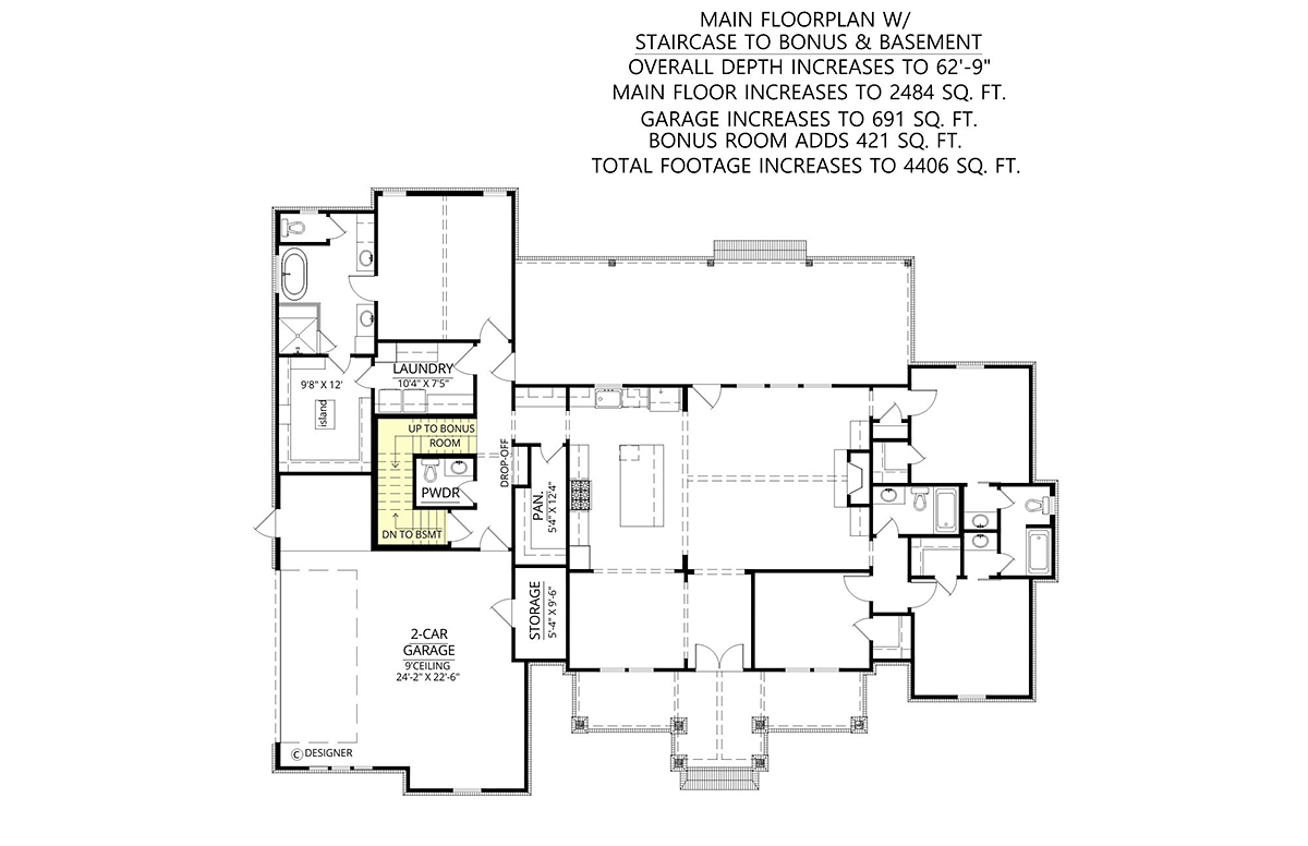 New American Style, 2343 Sq Ft, 4 Bed, 4 Bath, 2 Car | Plan 84705