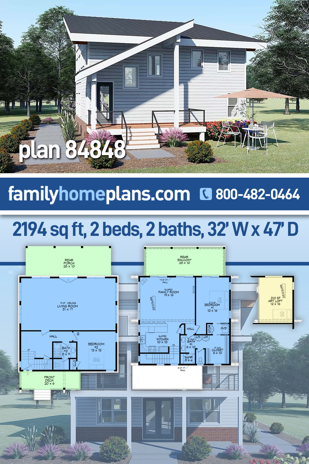 Coastal, Contemporary Style House Plan 84848 with 2194 Sq Ft, 2 Bed, 2 Bath