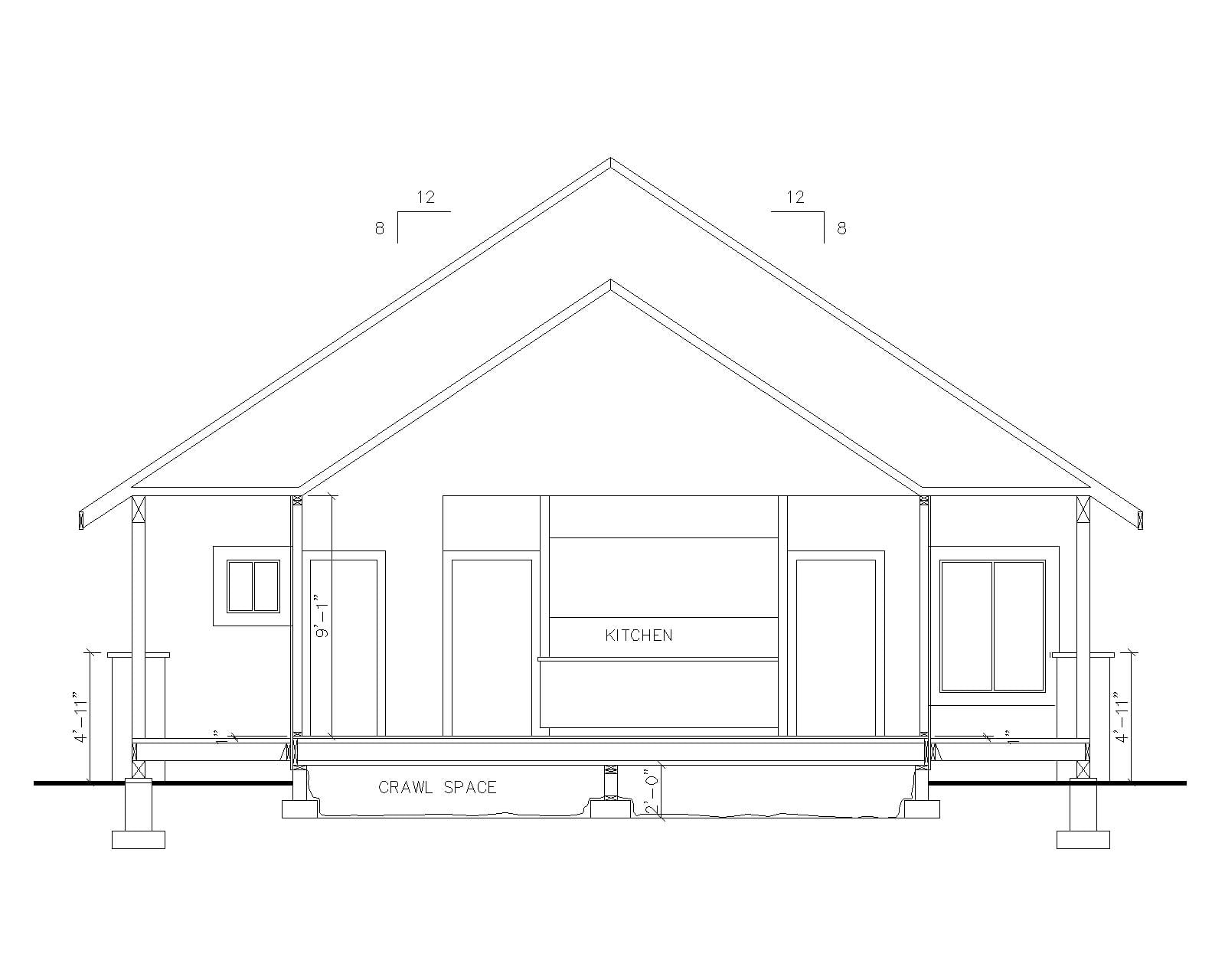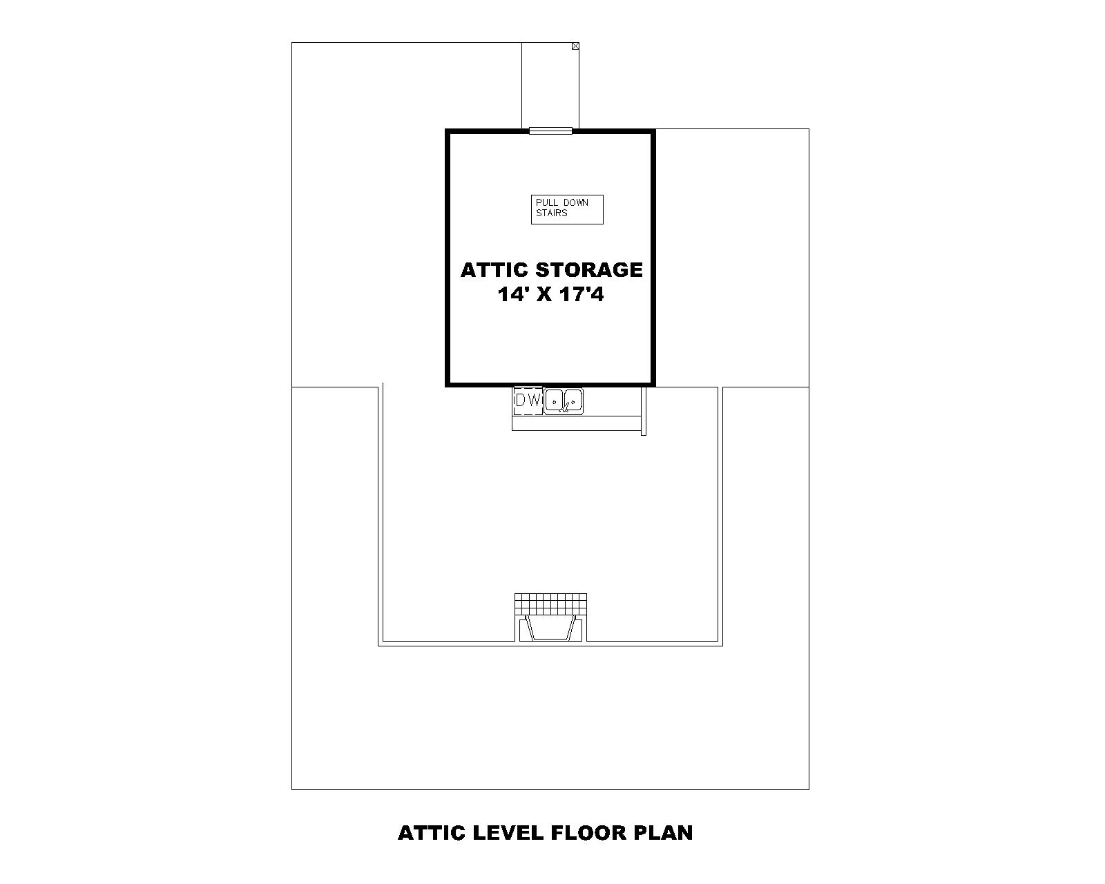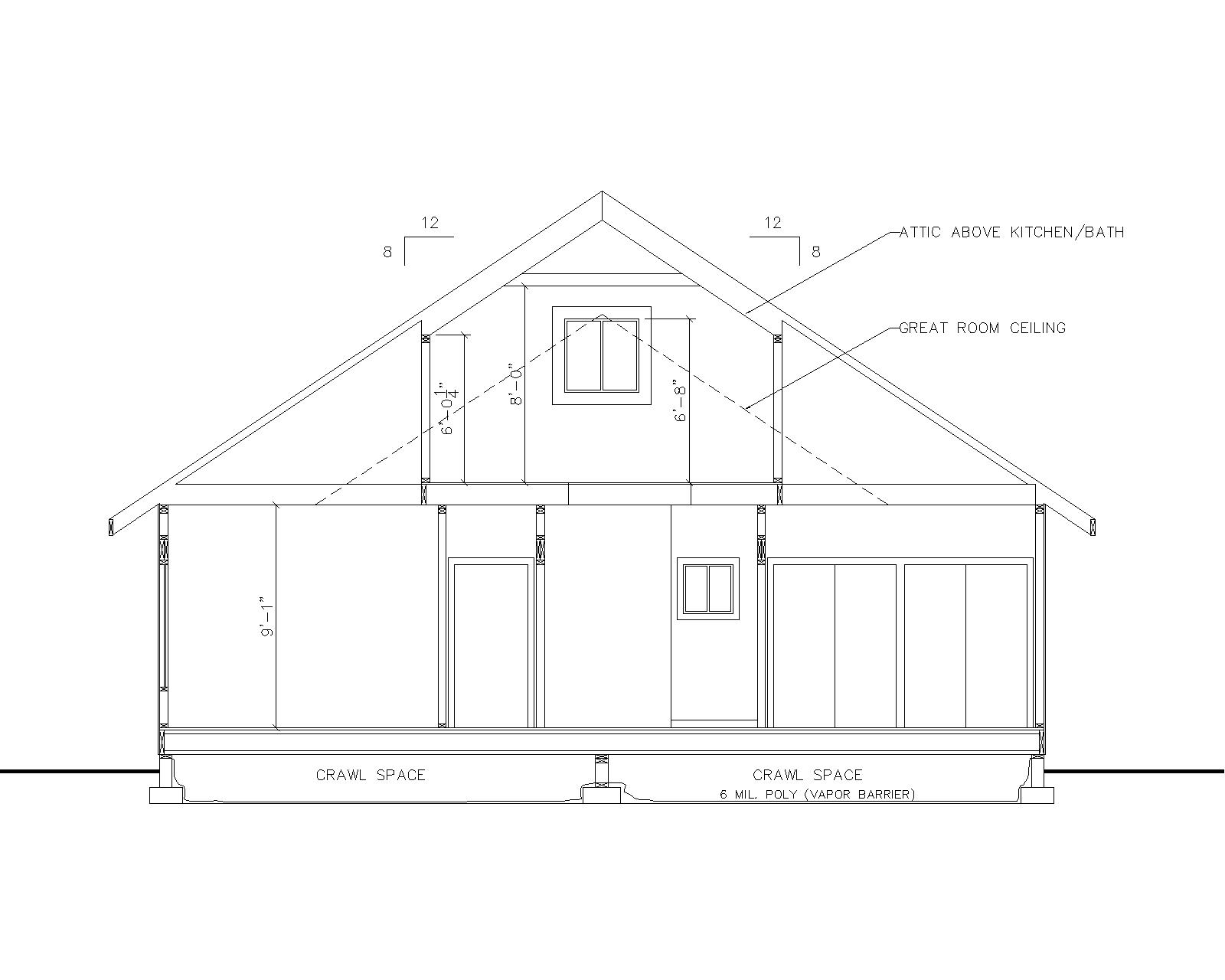 View Attached FileA: The plan is currently designed for attic space above the kitchen and bathroom, I have attached a cross section for you to see the ceiling heights. There is a set of pull-down stairs in the bathroom to access that area.