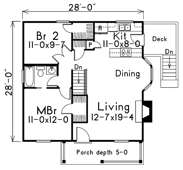 Traditional Style, 914 Sq Ft, 2 Bed, 1 Bath | Plan 87371