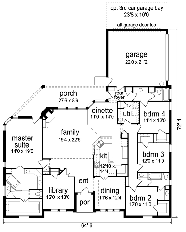 European, Traditional Style House Plan 87980 with 2775 Sq Ft, 4 Bed, 3 Bath, 2 Car Garage