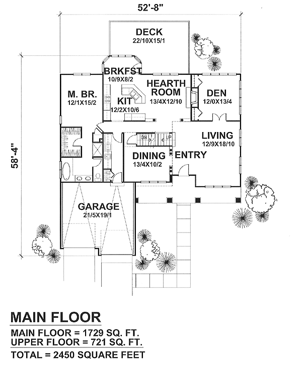 Traditional Style, 2450 Sq Ft, 4 Bed, 2 Bath, 2 Car | Plan 88015