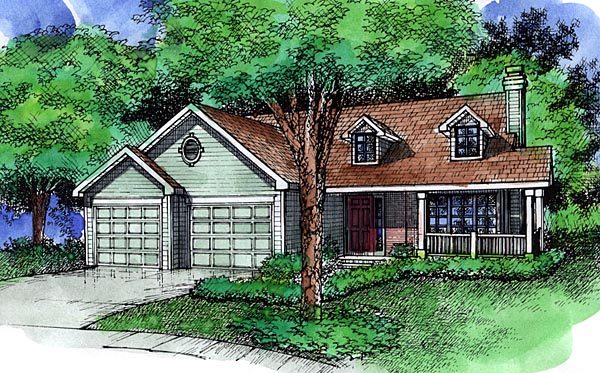 Country, One-Story, Traditional Style House Plan 88324 with 1231 Sq Ft, 3 Bed, 1 Bath, 2 Car Garage