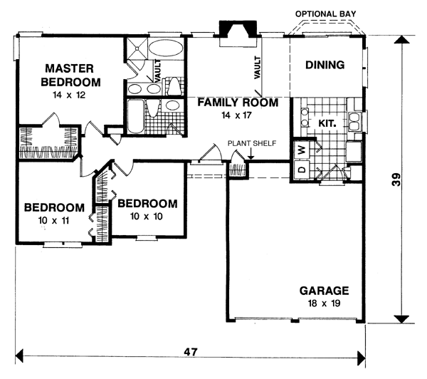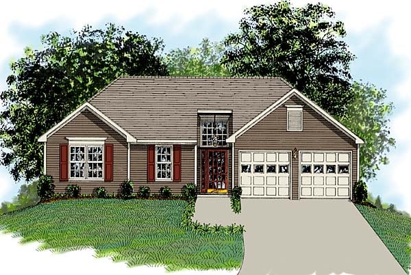 One-Story, Traditional Style House Plan 92477 with 1093 Sq Ft, 3 Bed, 2 Bath, 2 Car Garage