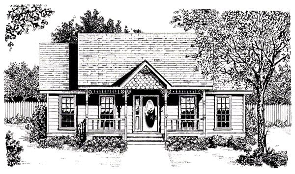 Country, Craftsman, Narrow Lot, One-Story Style House Plan 96598 with 947 Sq Ft, 2 Bed, 1 Bath