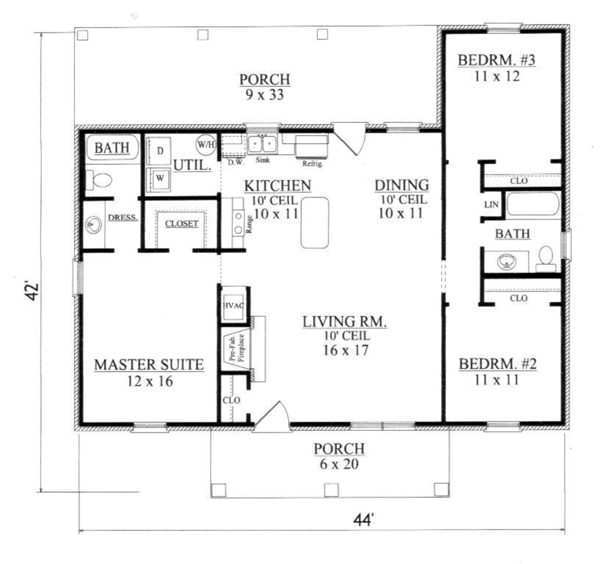 House Plan 96714 with 1288 Sq Ft, 3 Bed, 2 Bath