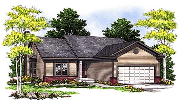 One-Story, Ranch Style House Plan 97186 with 1281 Sq Ft, 2 Bed, 2 Bath, 2 Car Garage