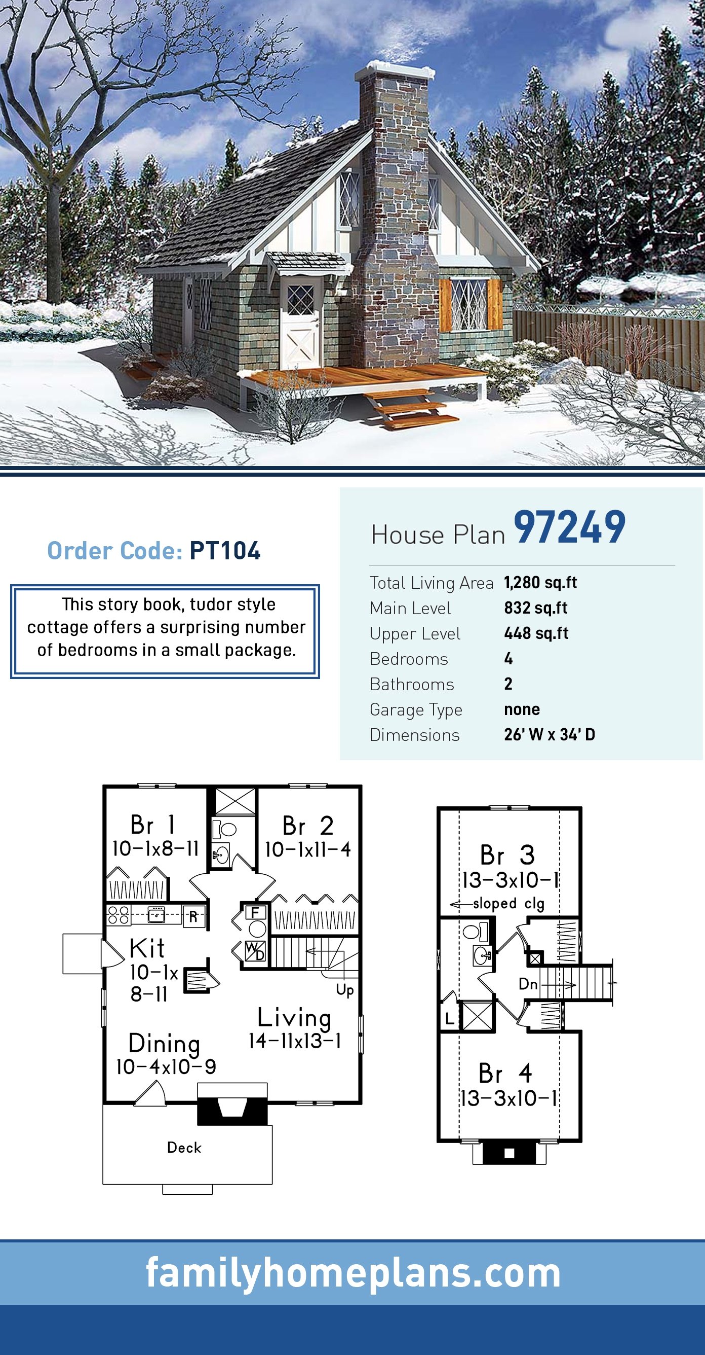 Country House Plans, Vacation House Plans, Tudor House Plans, Cabin & Cottage House Plans, Fireplace, Two-Story , Multi-Level , Small House Plans, Crawl Space, Basement , Slab , Main Level Master Bedroom, Laundry and/or Utility Room, Shallow Lot, Narrow Lot , PDF File