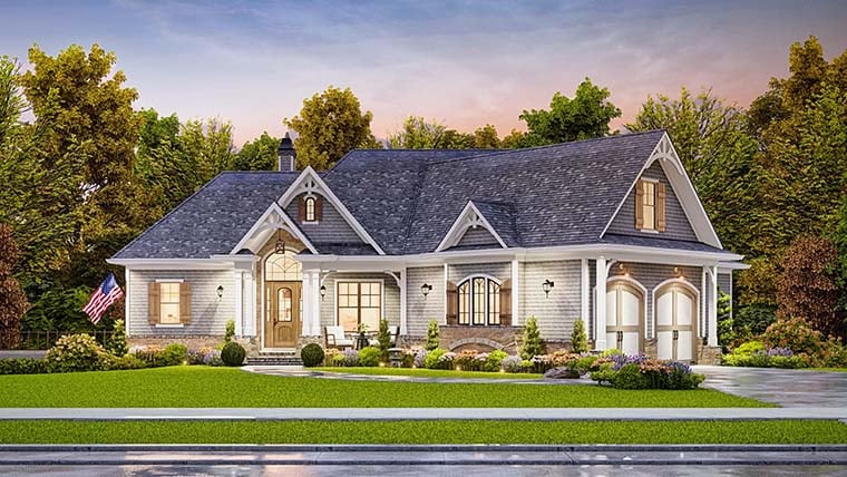 Spectacular outdoor views and an open floor plan are only a few special features in this charming cottage house plan. Upon entering this rustic home design, you are greeted by a vaulted ceiling in the foyer and lodge room. Timber trusses give this home a rustic feel while maintaining a functional floor plan. The open kitchen/ breakfast area is the perfect place for entertaining family and friends. Exit to the outdoor space from the breakfast area or lodge room and take in the magnificent views. This home design features a master suite which includes a luxurious bath and walk in closet. Two additional bedrooms with shared bath round out the first floor of this cozy ranch home plan. We offer floor plan modifications on all of our mountain style house plan designs.