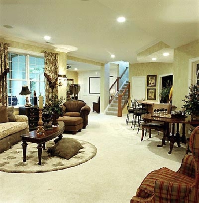 Based strictly on curb appeal, this graceful stone and stucco design will likely stop traffic in your neighborhood. But once inside, the magic really begins to take hold. From the huge, lower-level recreation room, to the library, to the hearth room, this plan is packed with great details that will make life more convenient and much more comfortable for you and your family. This home’s combination of spacious rooms dedicated to particular purposes--like the dining room and exercise room--and open-plan rooms like the hearth room and rec room--give your imagination room to expand. This home is designed with a basement foundation.